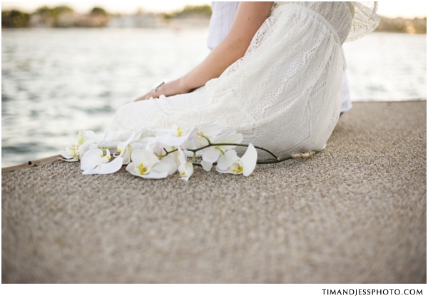 From Tim & Jess Photo: "This casually elegent beach wedding was styled by an amazing up and coming stylist, Kaleb Norman James. I loved the fact that the couple was barefoot. The bride wore a strapless gown, simple jewelry, and a relaxed ponytail. A singe branch of orchids acted as her boquet. ofThe groom looked effortlessly stylish as well with a button-up/vest combo and rolled up jeans. The reception was set on a sandy beach. Various sized pink chinese lanterns were placed on the ground. There were candles decorating the table and various colorful juices were served with the place settings attached. Seashell and twine details added the finishing touches to a sweet wedding on the beach."